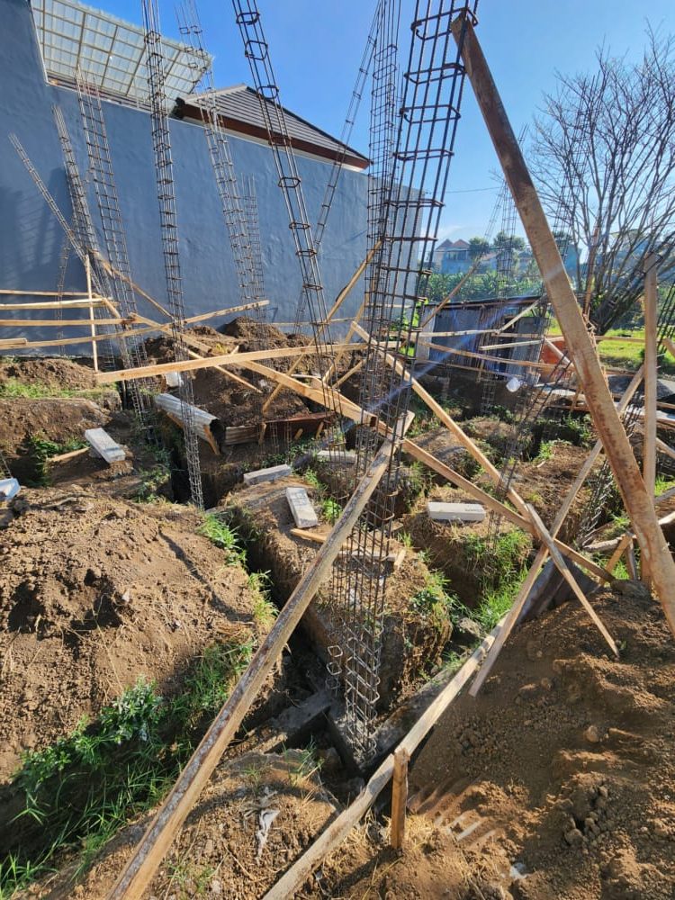 Untuk Villa 2 lantai kali ini kami menggunakan Pondasi setapak cor dengan ukuran 80 cm x 80 cm x 20 cm di hubungankan dengan sloof 20 cm x 40 cm.