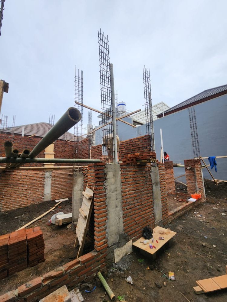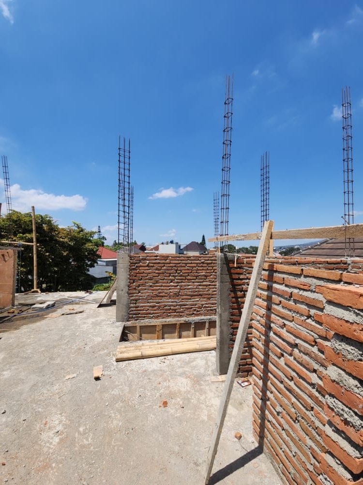 Pada Project Villa Minimalis di batu Malang ini kita menggunakan bata merah untuk dinding nya. di lapis plester konvensional.