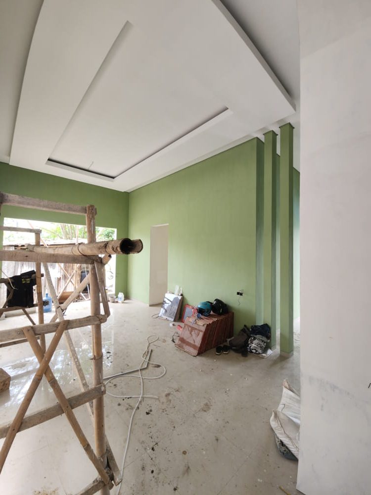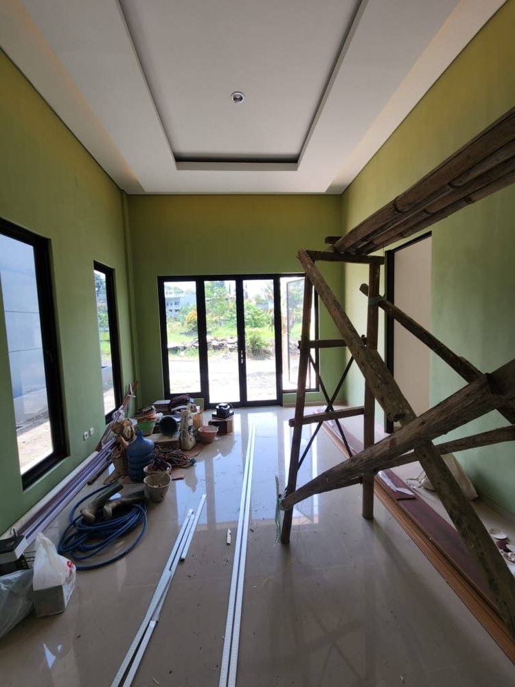 Area Lantai kita menggunakan Granit dari Granito ukuran 60 x60, cat menggunakan catylac, serta kusen kita menggunakan alexindo dengan warna hitam,